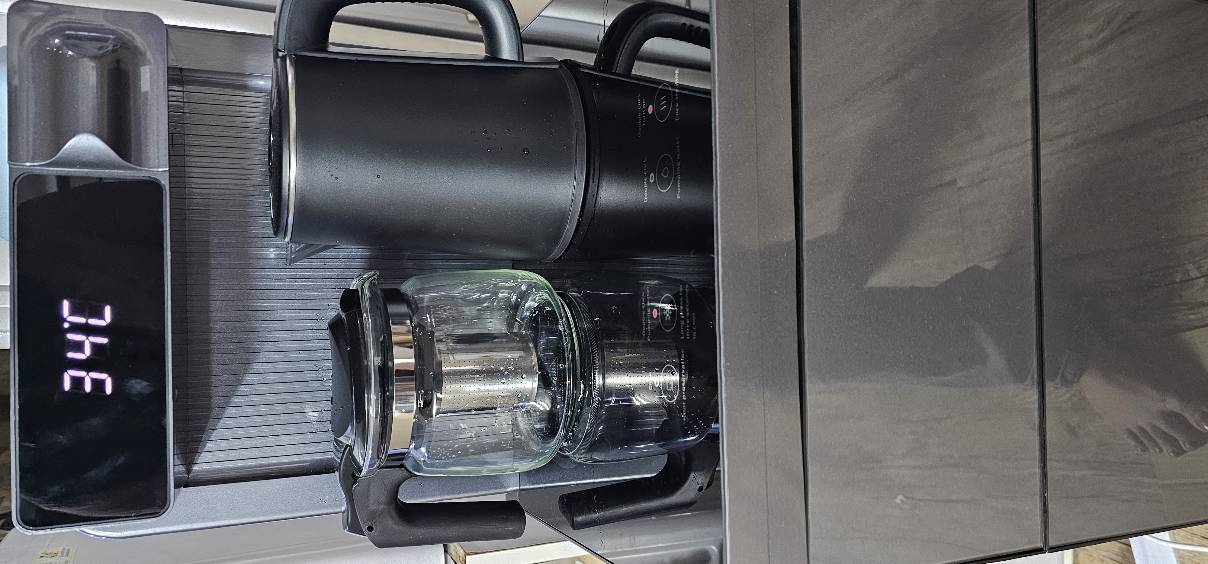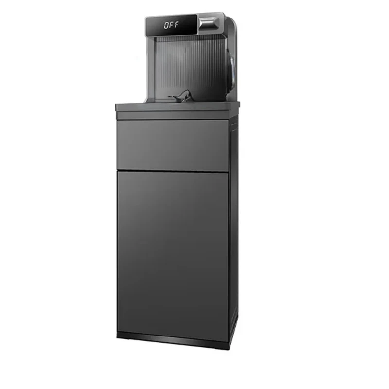 ابسردکن ایستاده همرا با کتری وقوری شیشه ای برای اب جوش این ابسردکن مجهز به ریموت وصفحه تاچ است کهاب جوش واب یخاست ودمای ابنشان میده
