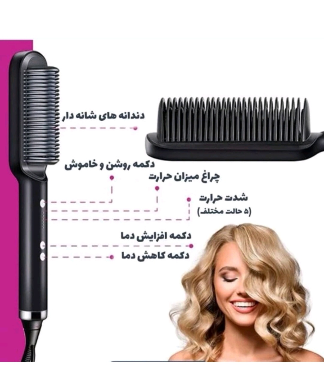 سایر توضیحات ویژگی های برس حرارتی شانه ای سوکانی اصل: صاف کننده عالی و سریع مو استفاده راحت و آسان بیشینه دما 950 درجه فارنهایت قابلیت تنظیم حرارت منبع تغذیه برق مستقیم شهری جنس صفحات سرامیک مناسب برای صاف کردن مو و ریش دارای دکمه روشن/خاموش طراحی آرگونومیک دارای 4 رنگ بندی سیم گردان 360 درجه دارد طراحی ار گونومیک منبع تغذیه برق شهری